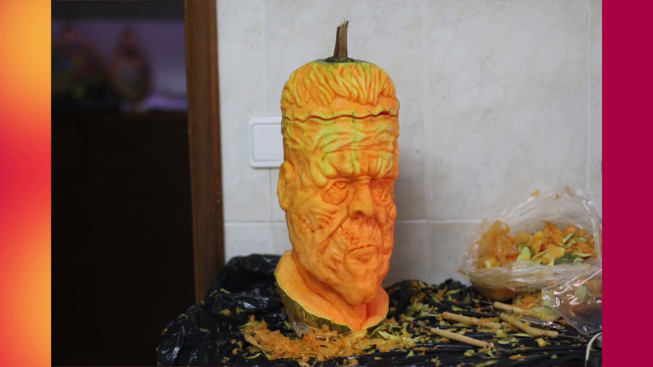 frankenstein carved pumpkin