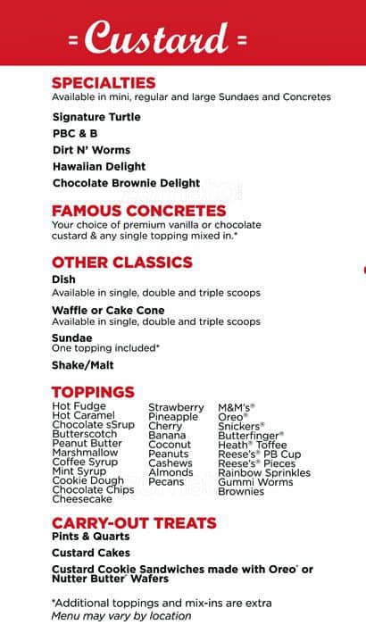 freddy's ice cream menu