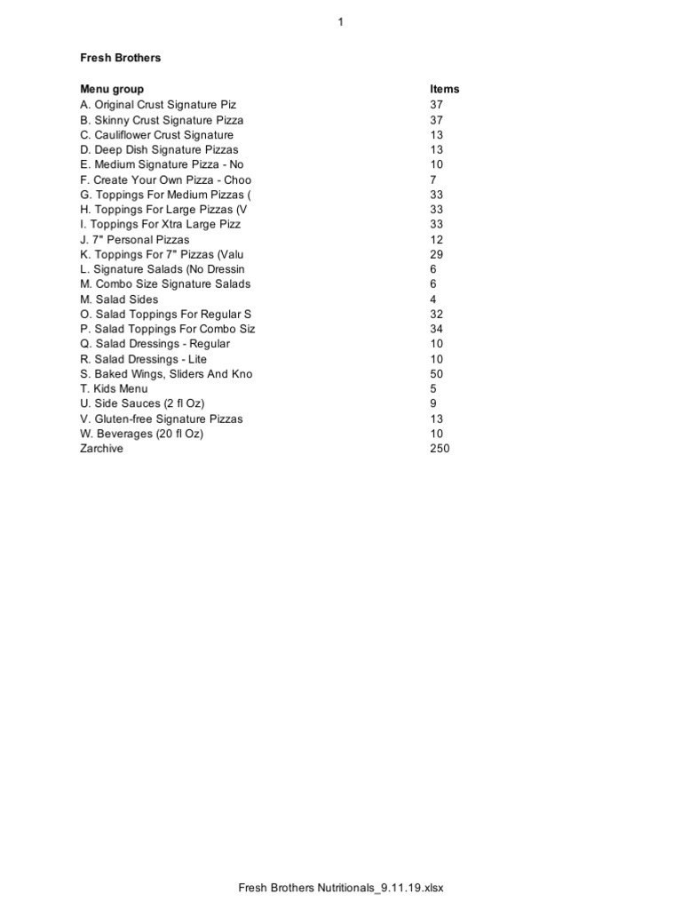 fresh brothers menu