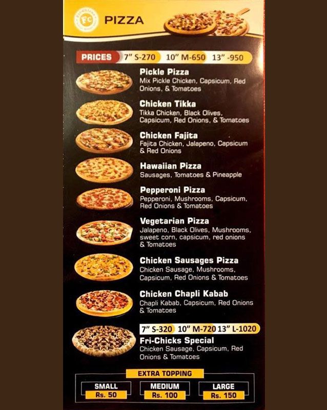 fri chicks menu