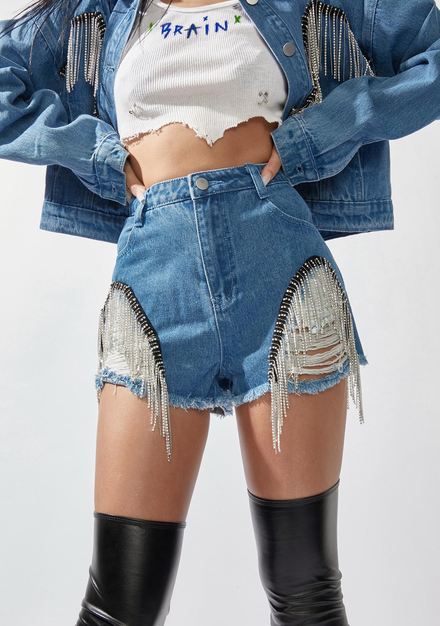 fringe denim shorts