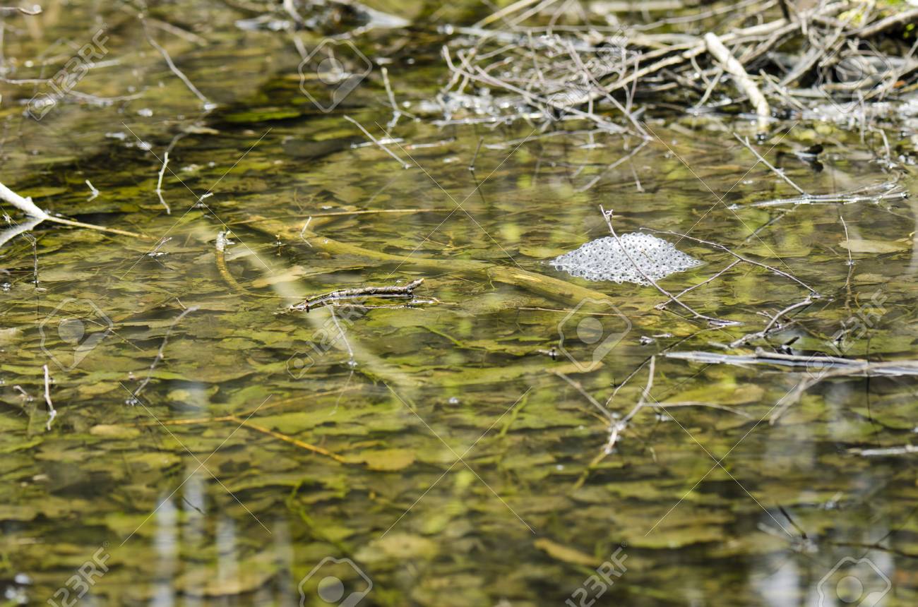frog eggs in pond