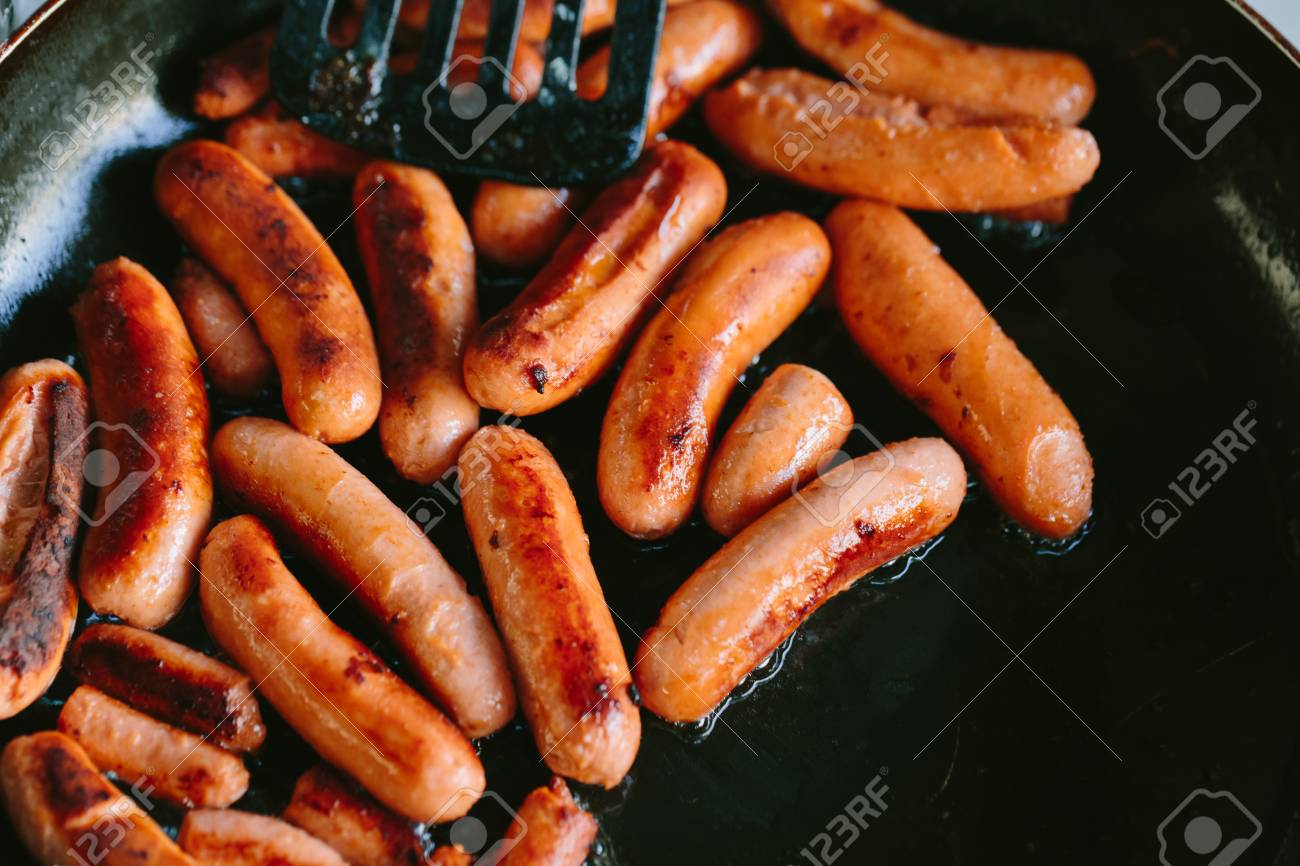 frying sausages