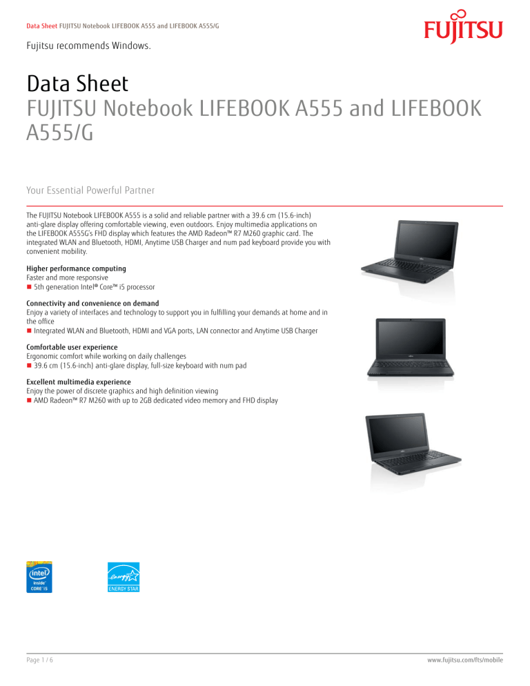 fujitsu lifebook a555