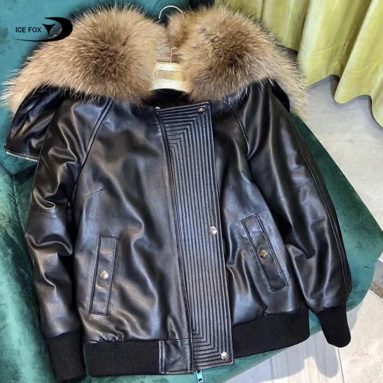 fur collar leather jacket womens
