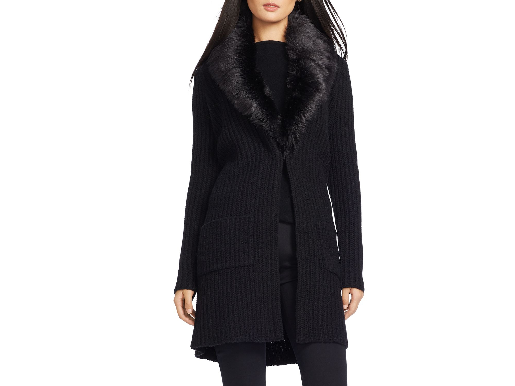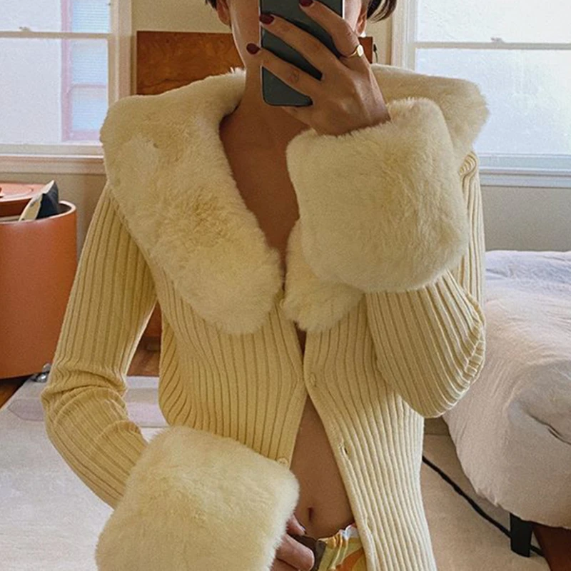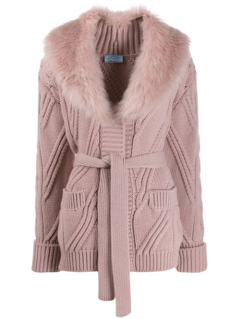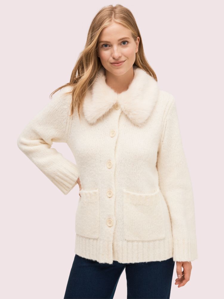 fur collared cardigan