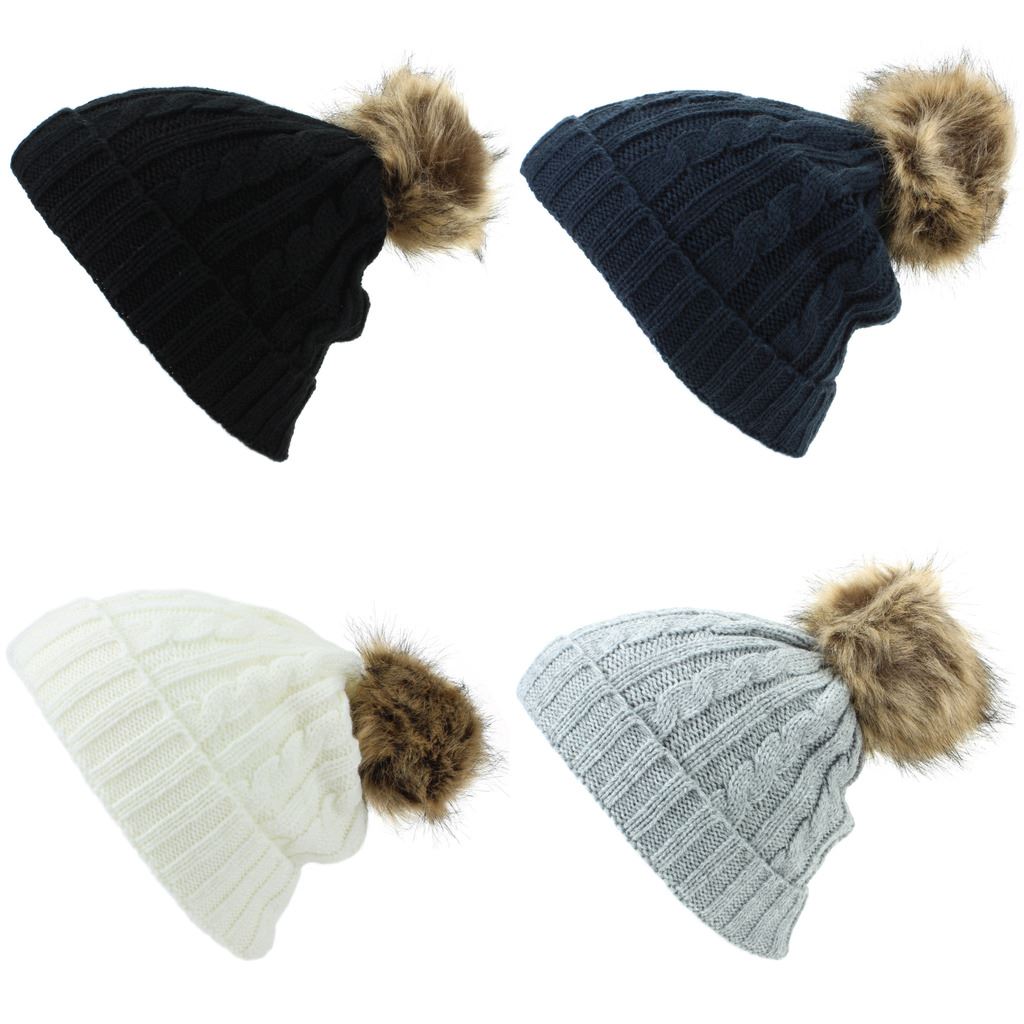 furry pom pom hat