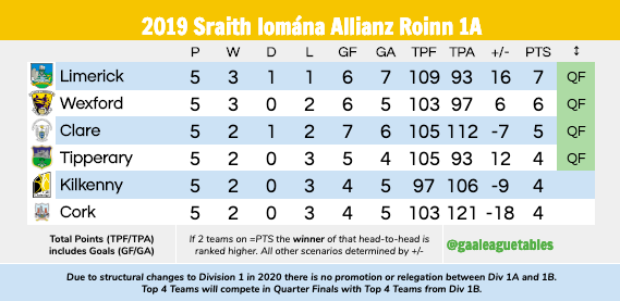 gaa league tables