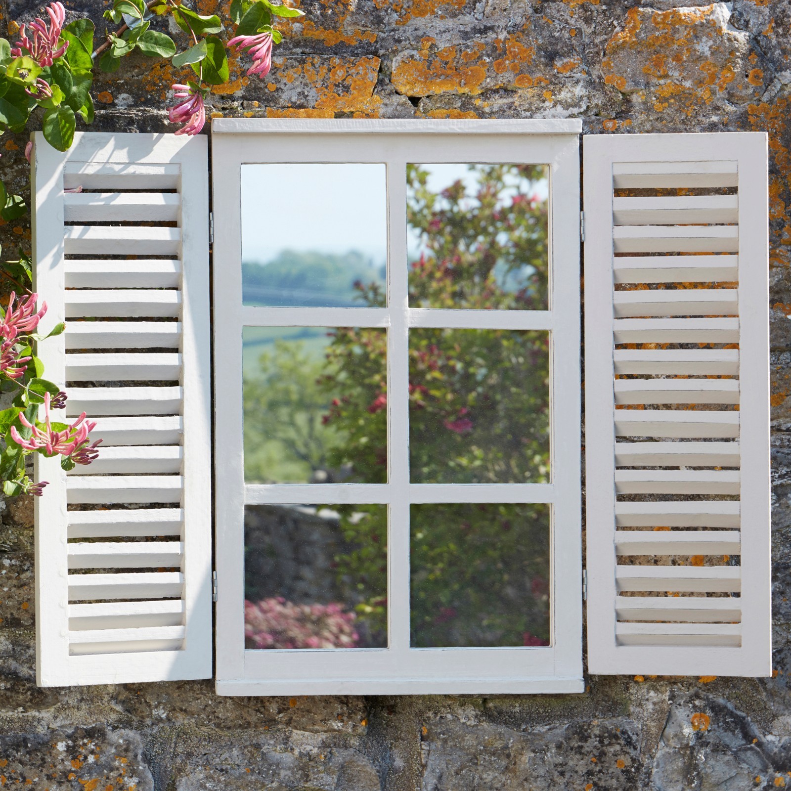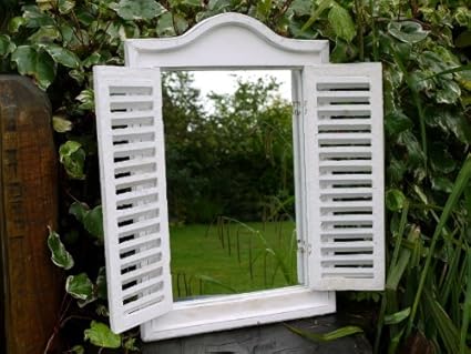 garden mirror with shutters