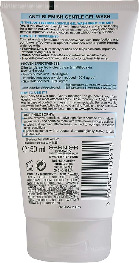 garnier pure active anti blemish soap free gel wash sensitive skin