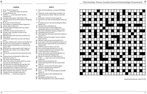 general knowledge crossword