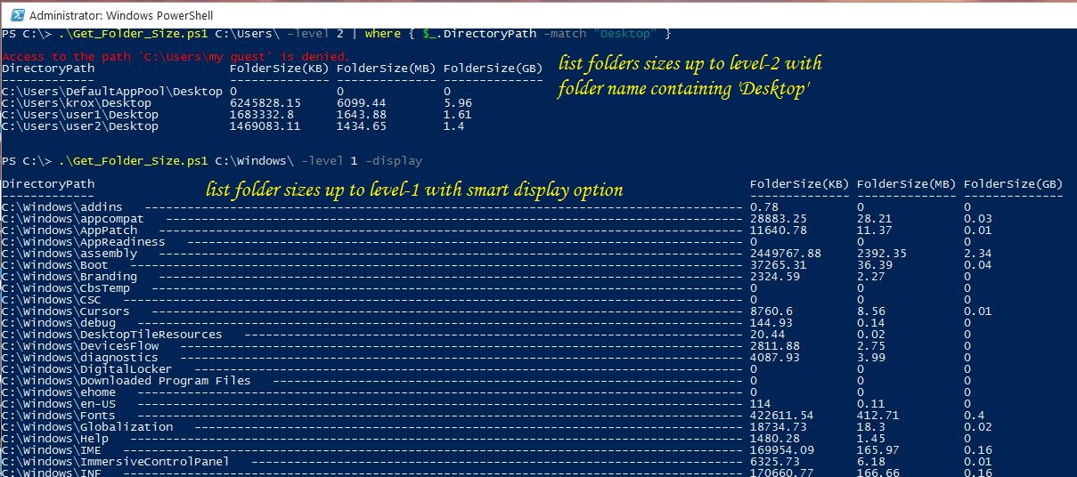 get folder size powershell