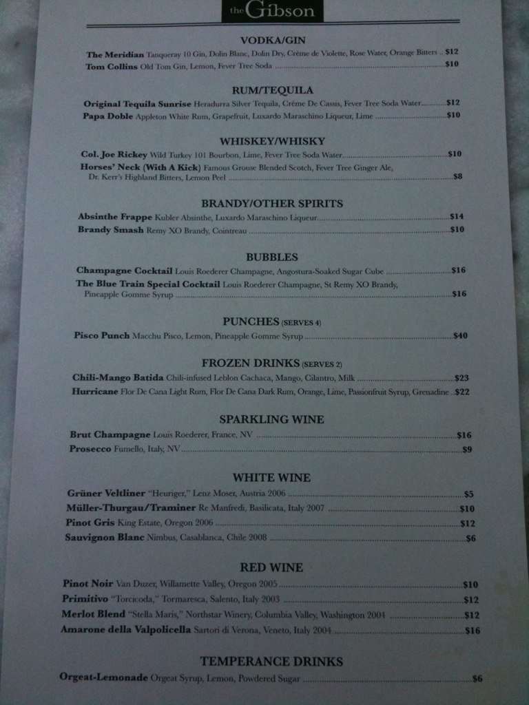 gibsons menu
