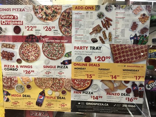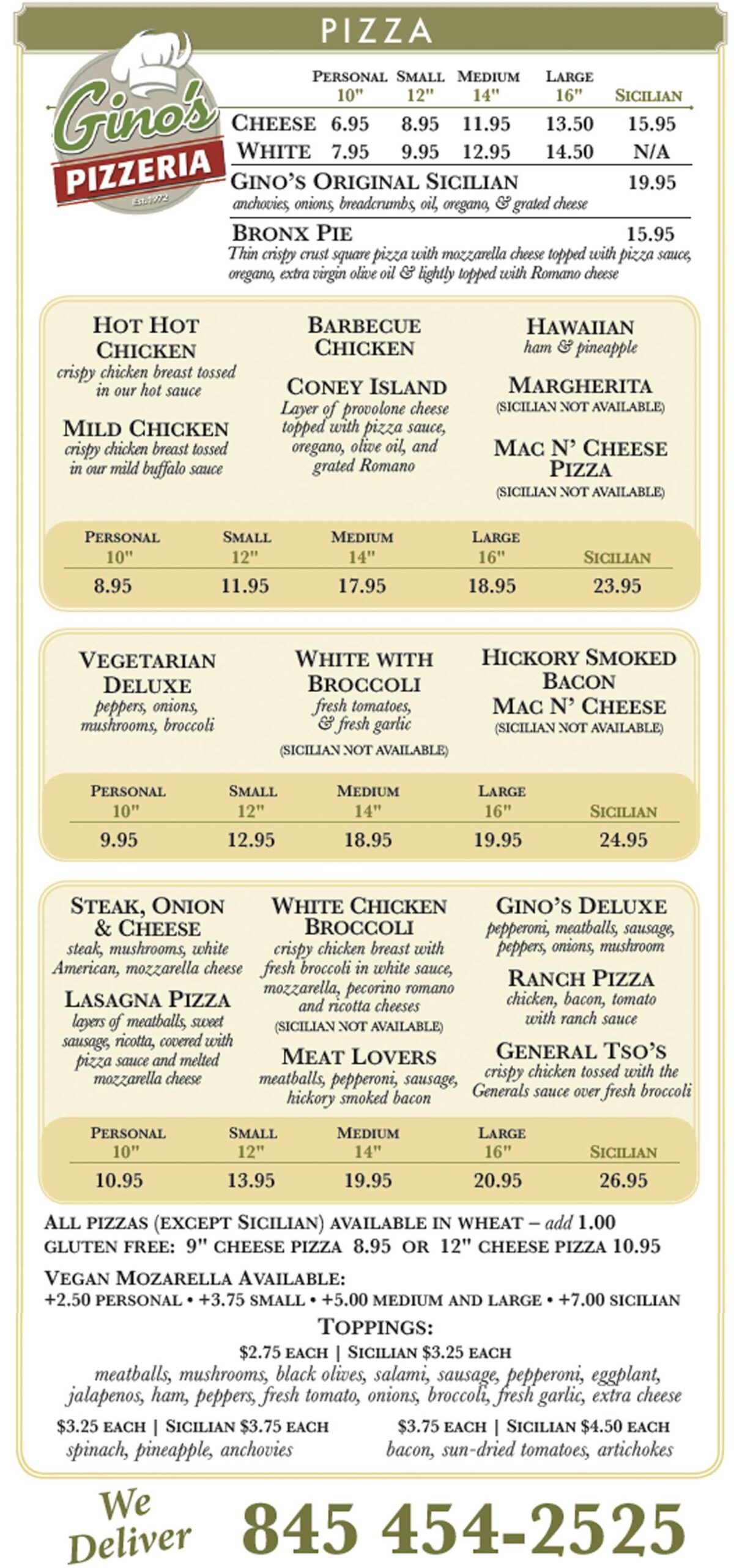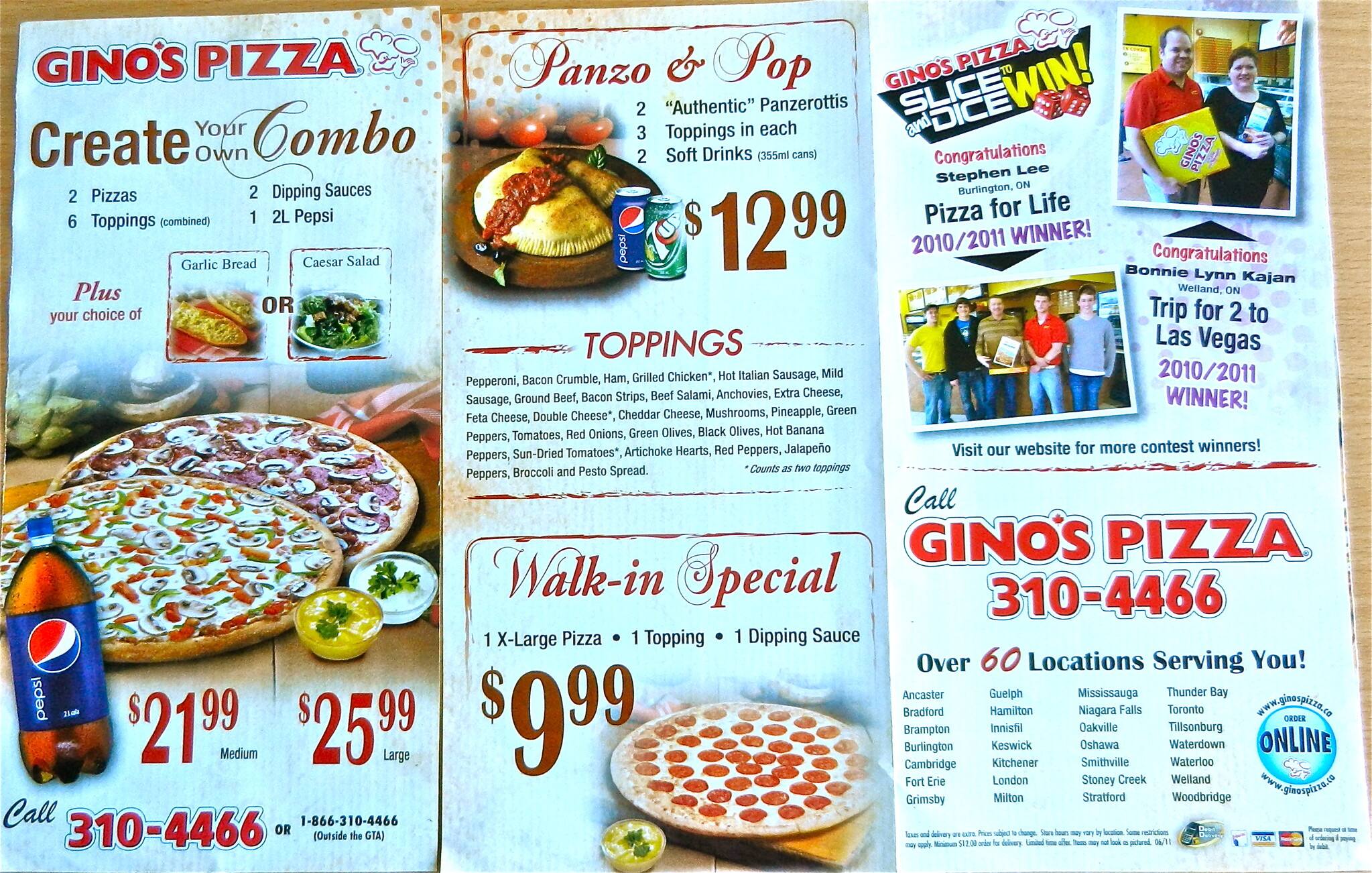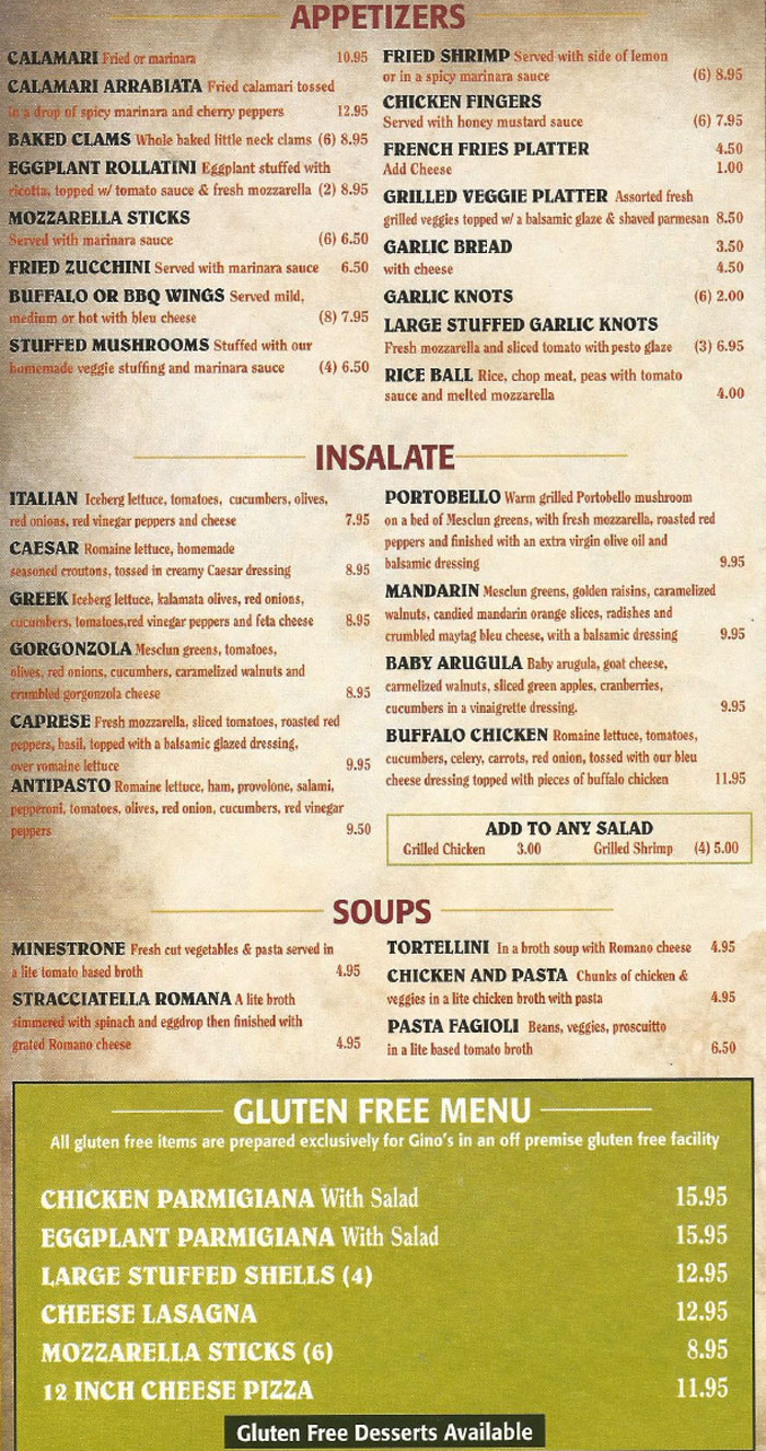 gino's pizza menu