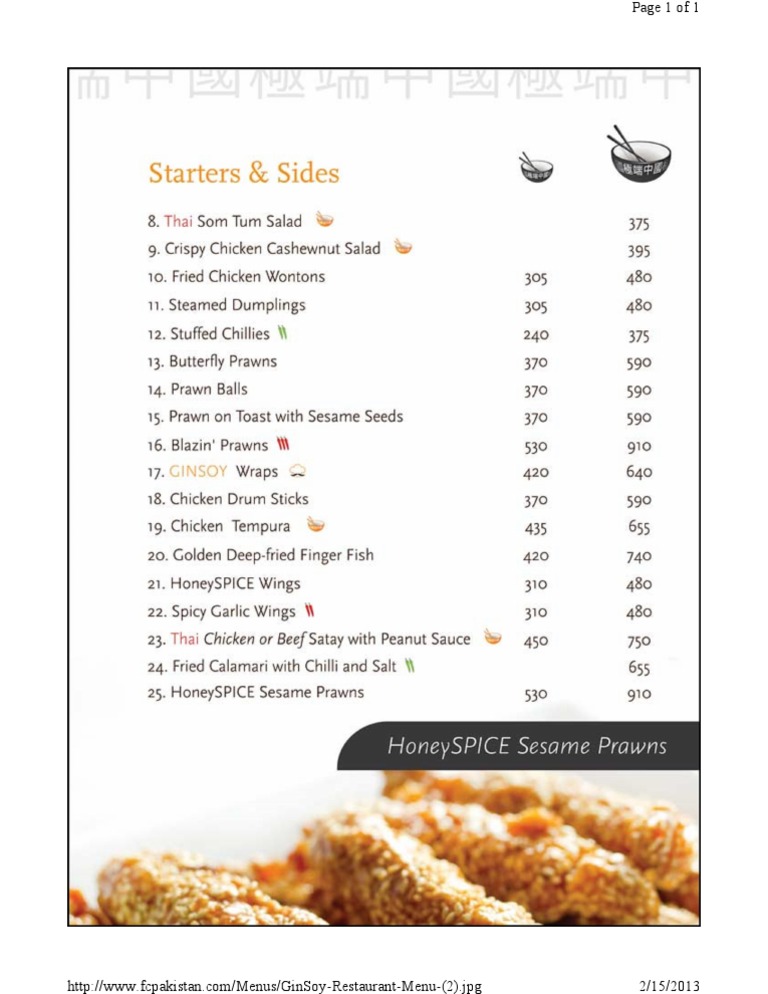 ginsoy menu