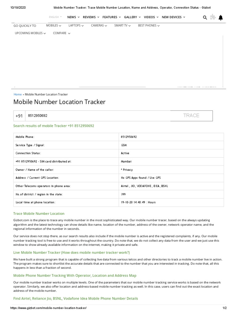 gizbot mobile tracker