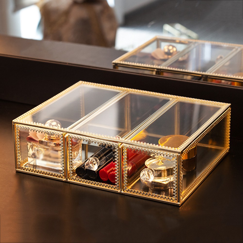 glass makeup organizer