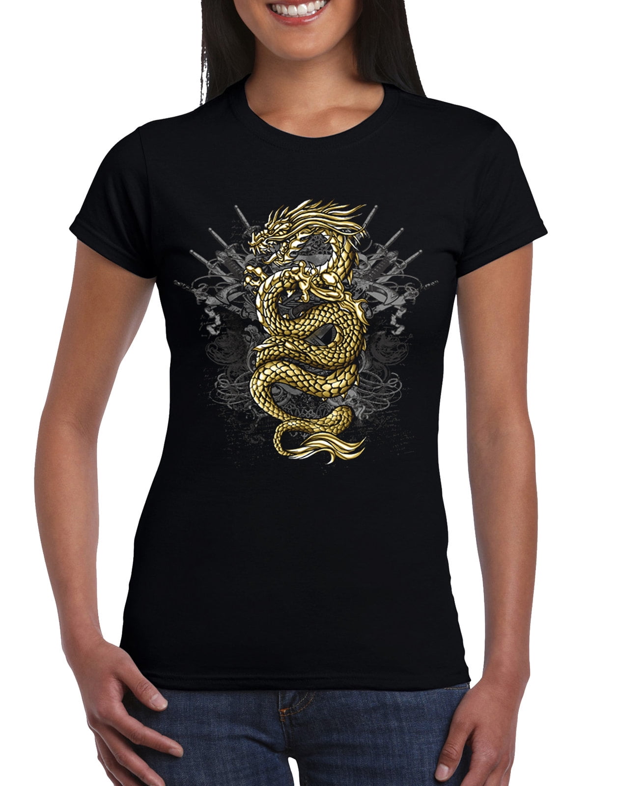 gold and black t shirt