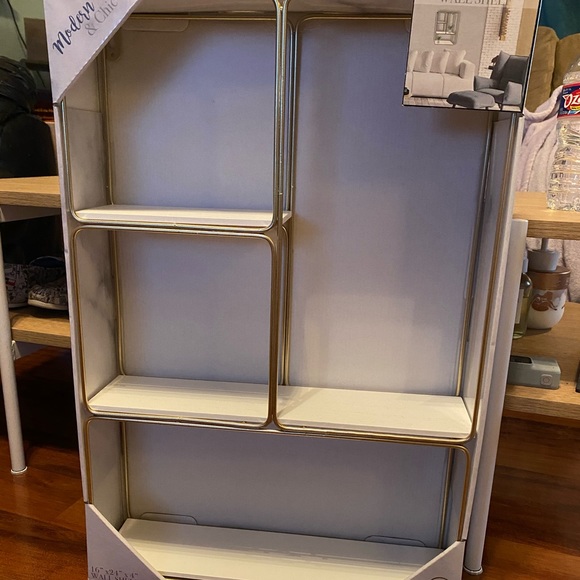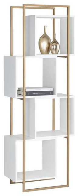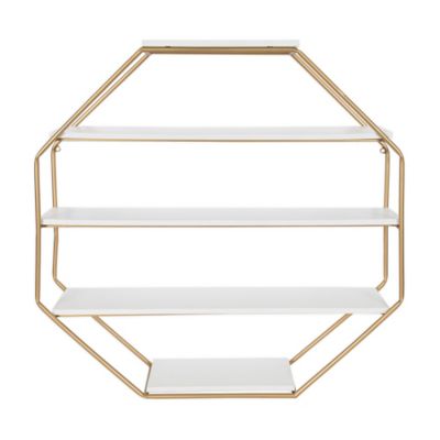 gold and white shelving