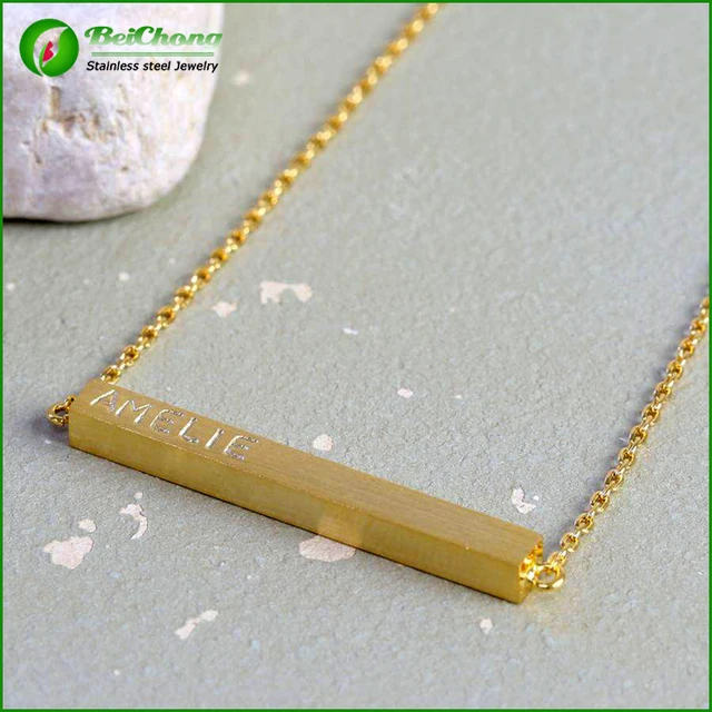 gold bar necklace engraved