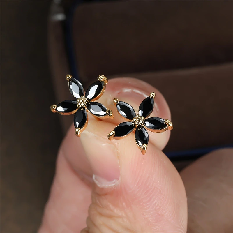 gold black stone earrings