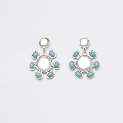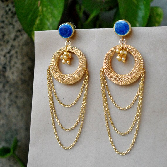 gold blue stone earrings