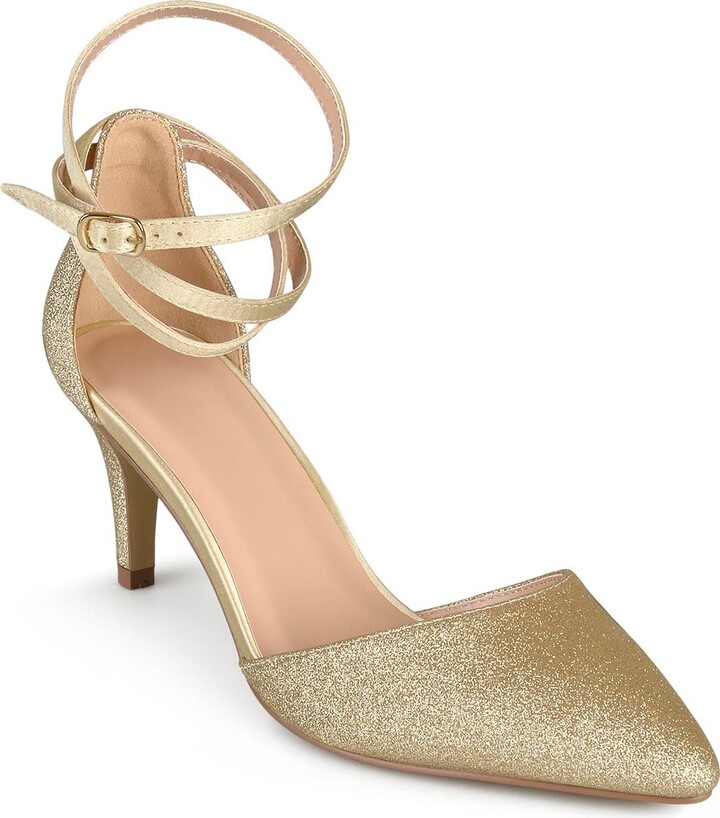 gold closed toe heels