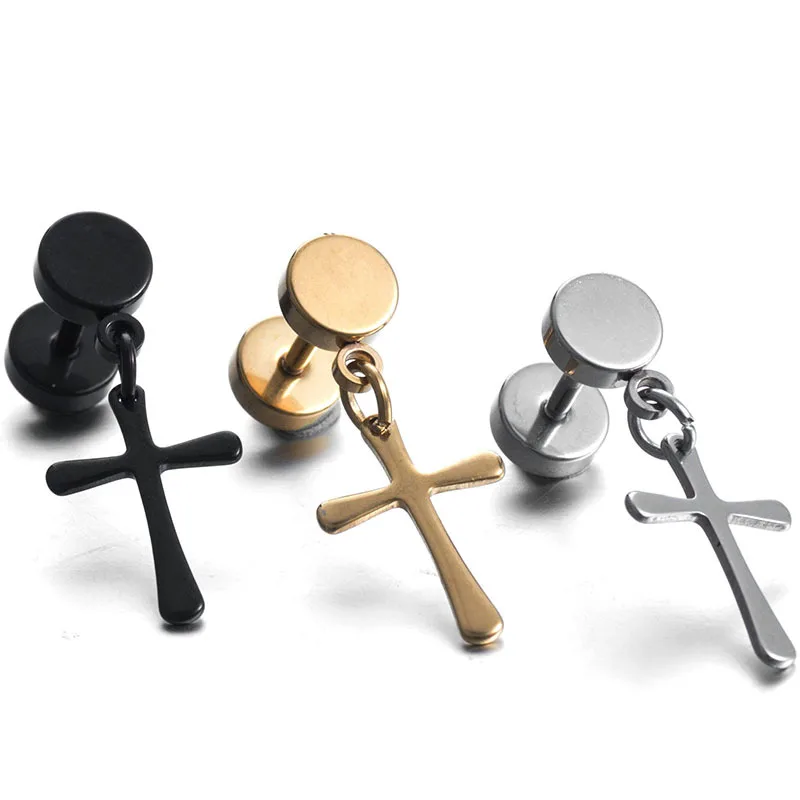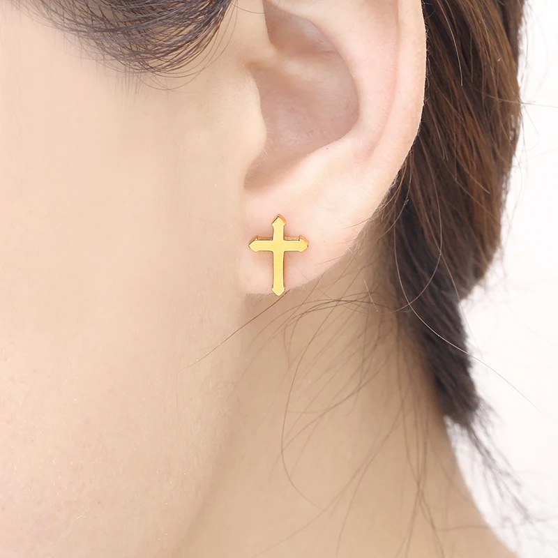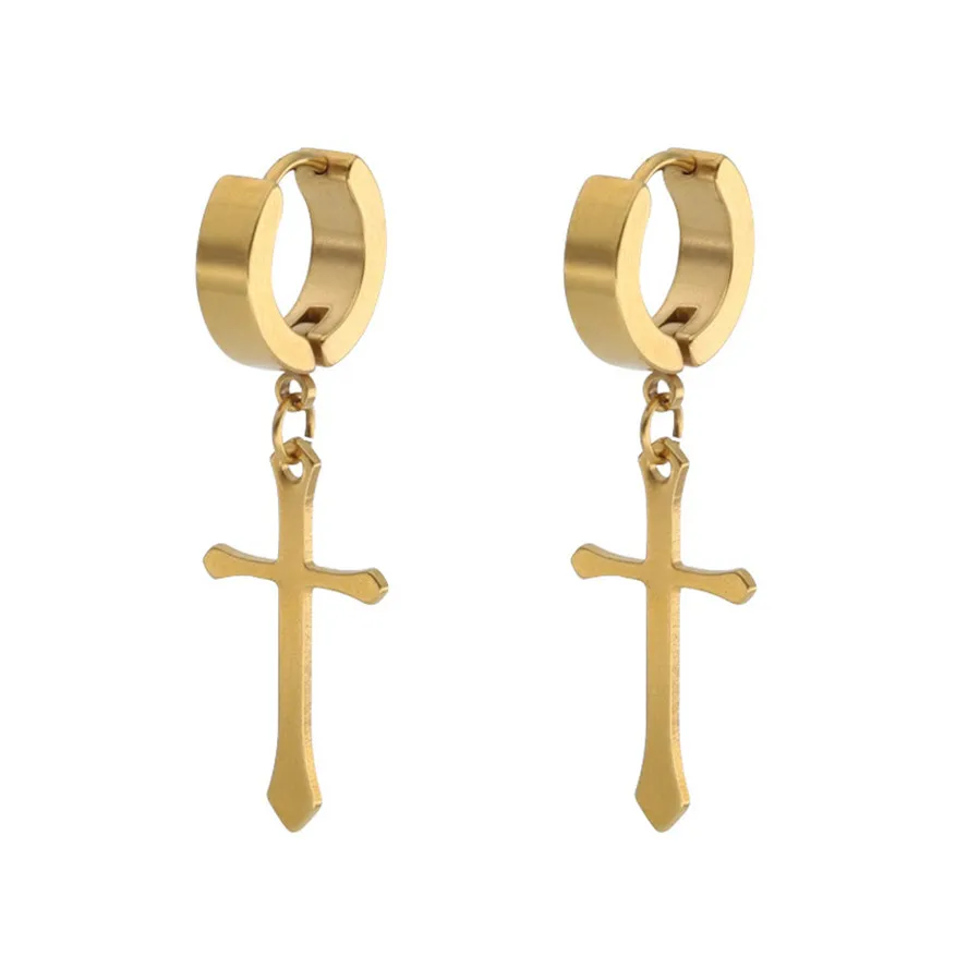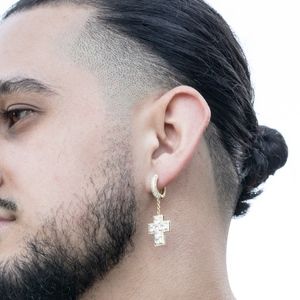 gold cross earrings men