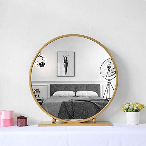 gold framed round mirror