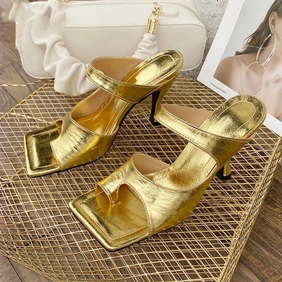 gold heeled mules