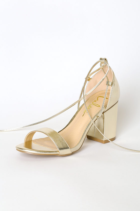 gold lace up heel