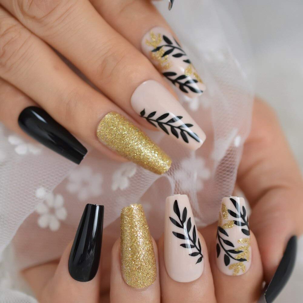 gold leaf acrylic nails