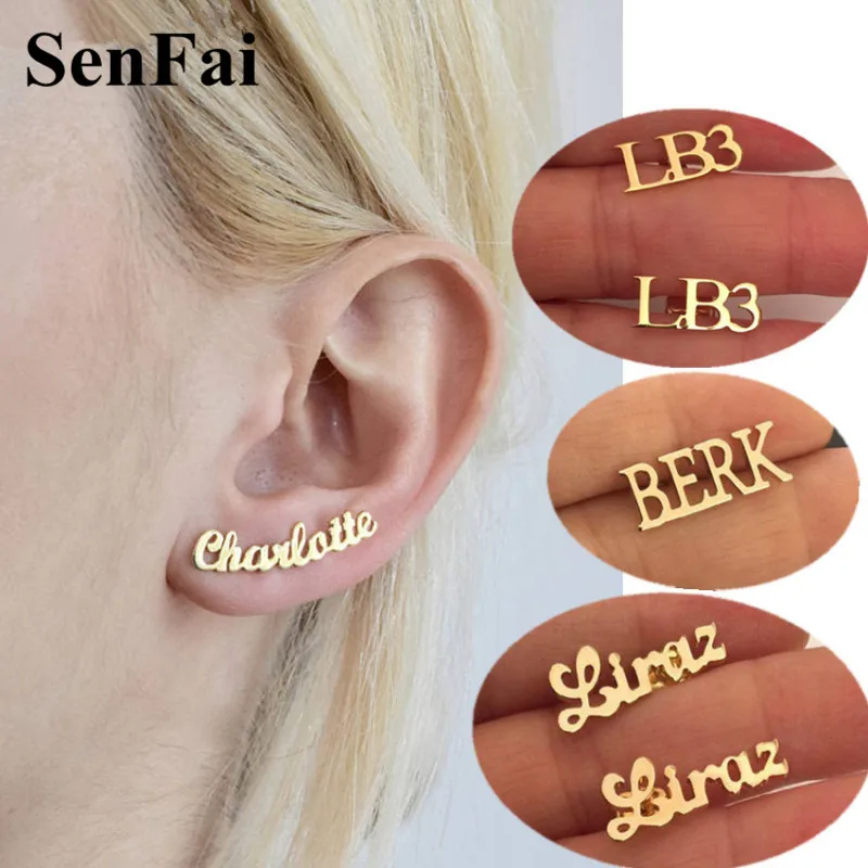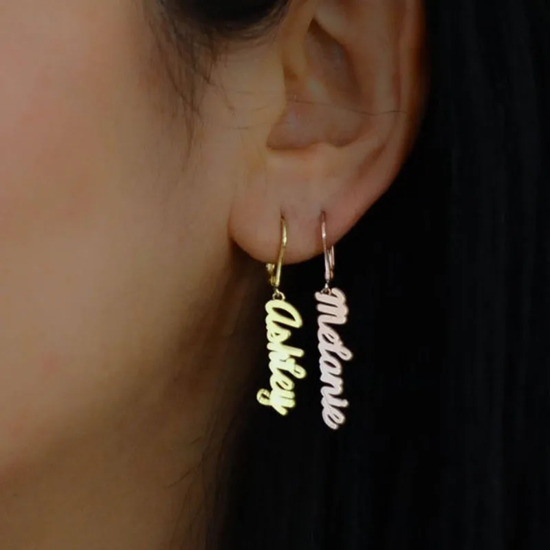 gold name earrings