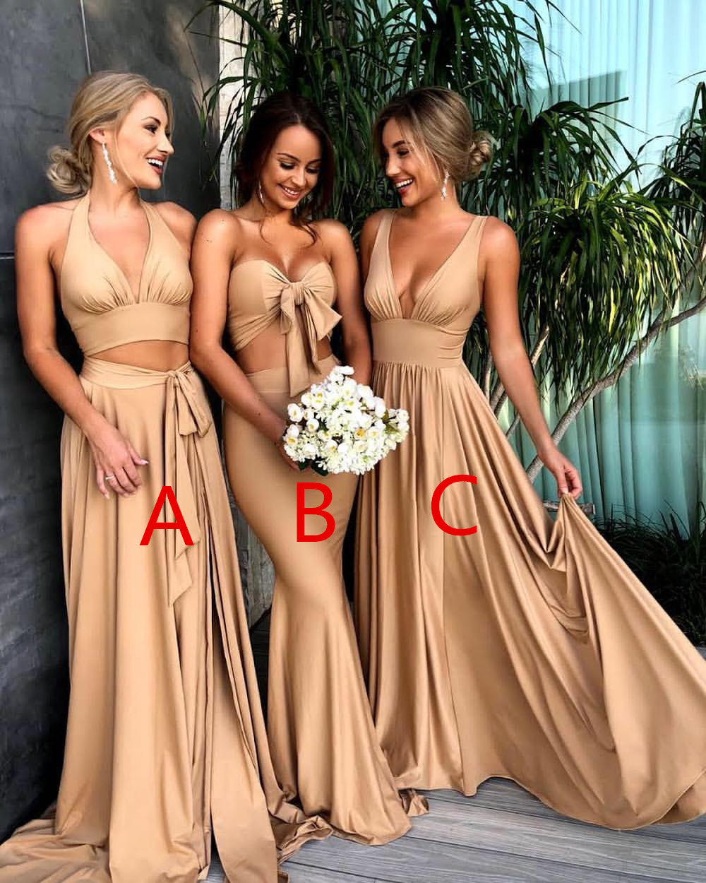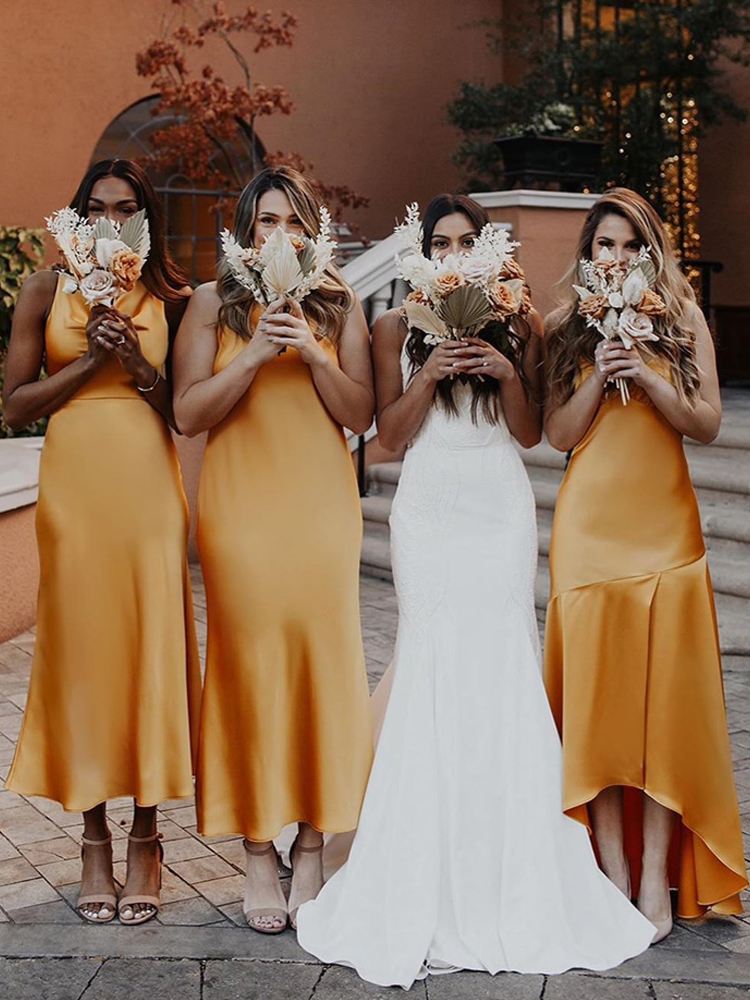 gold satin bridesmaid dresses