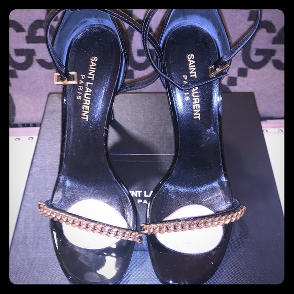 gold ysl heels