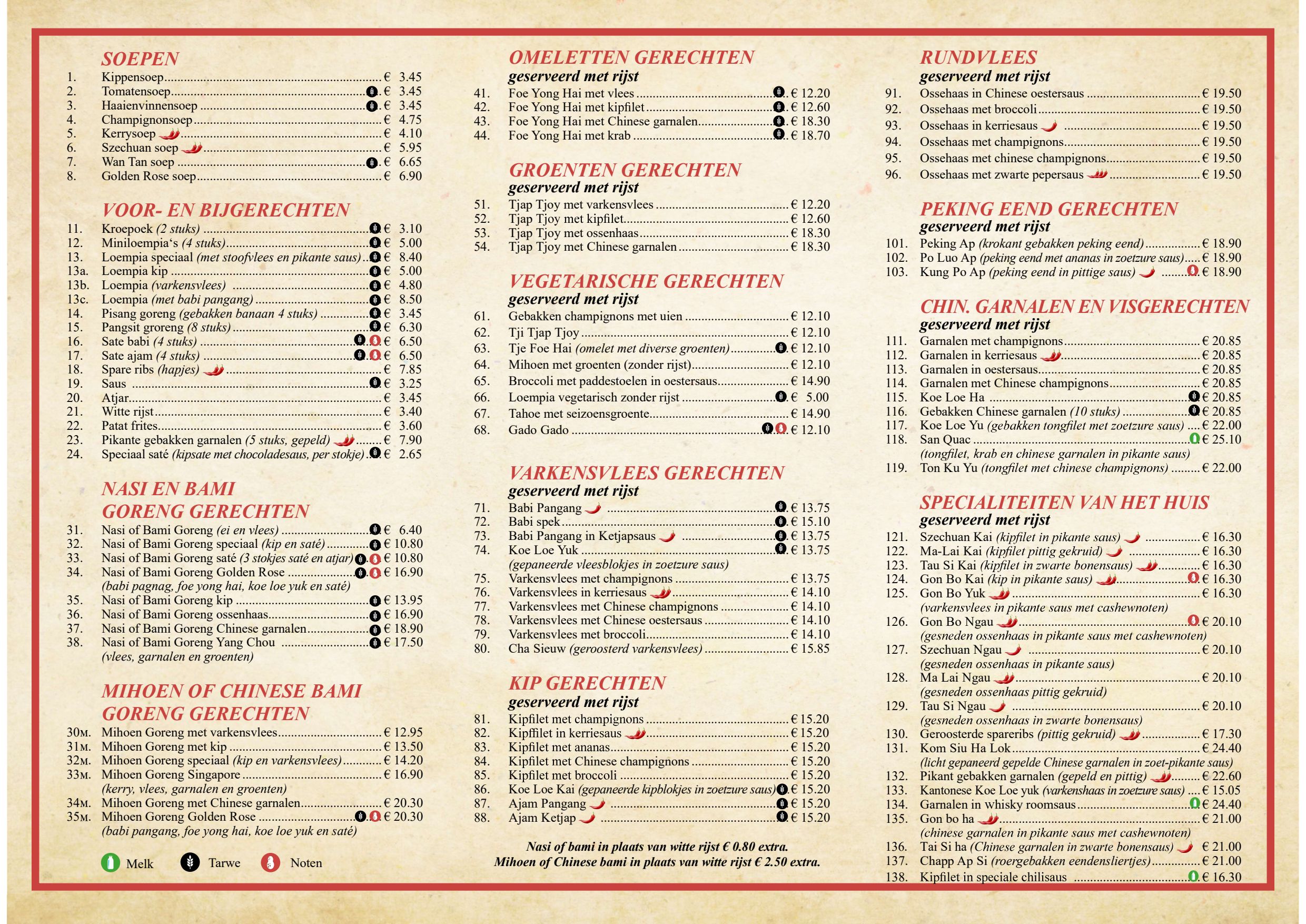 golden rose menu