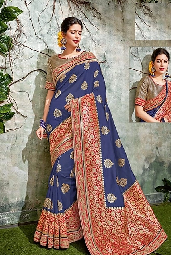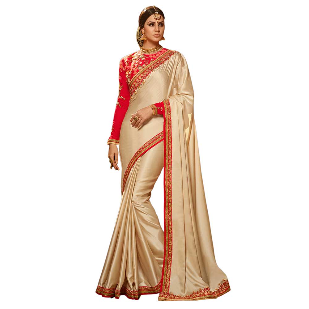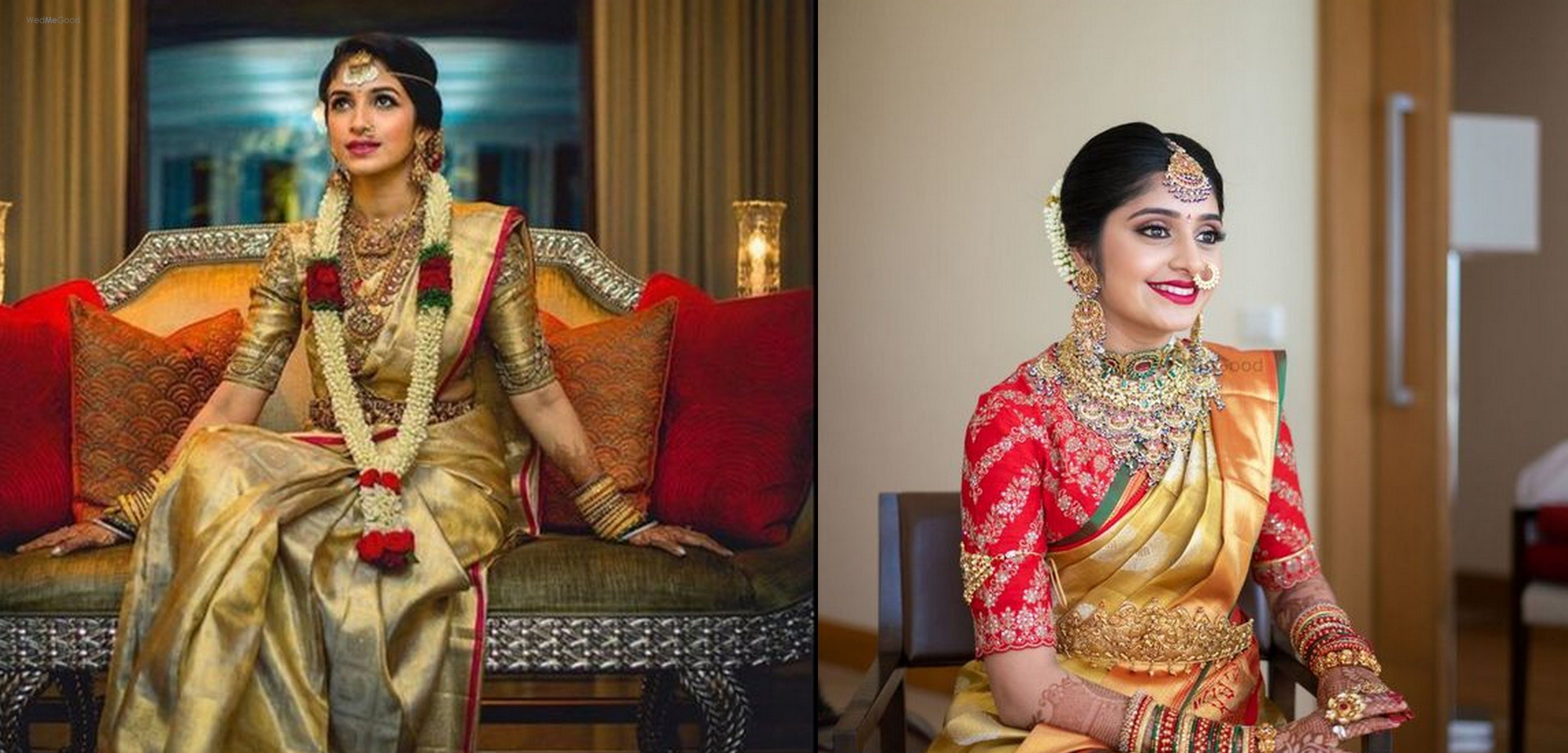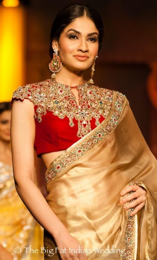 golden saree with red blouse