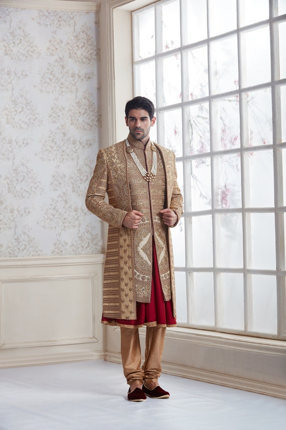 golden sherwani