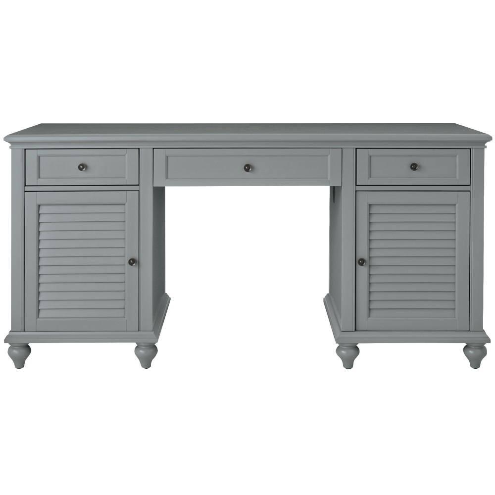 gray desk with drawers