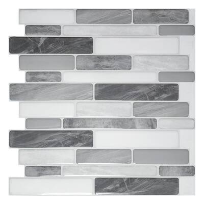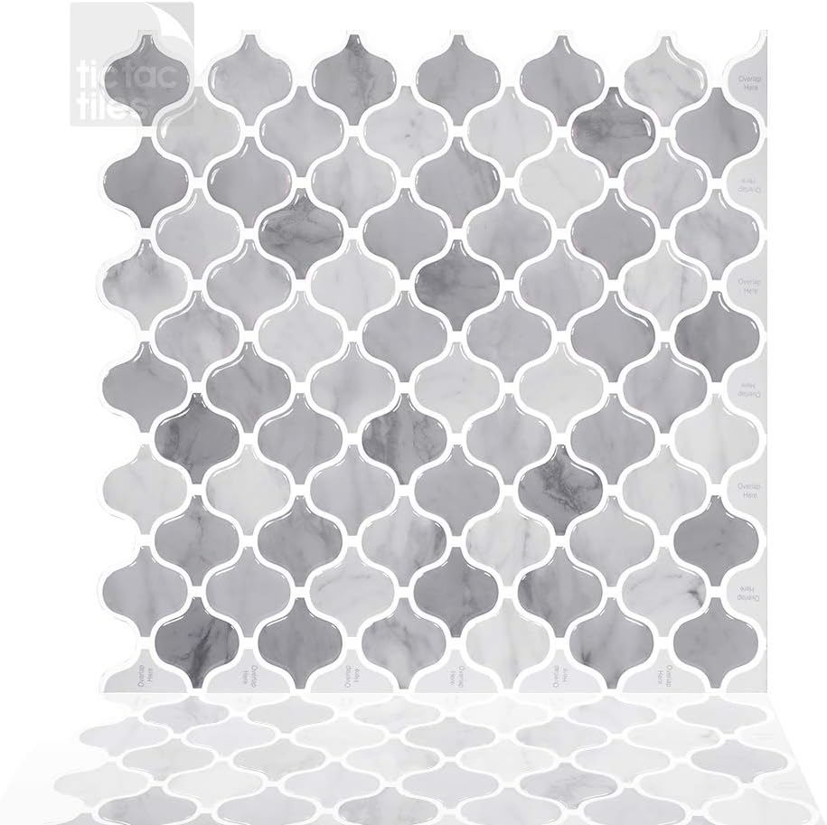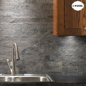 gray peel and stick tile backsplash