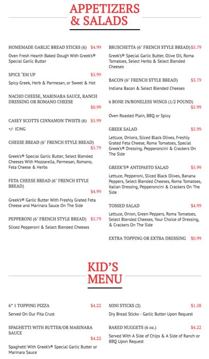 greeks pizza menu