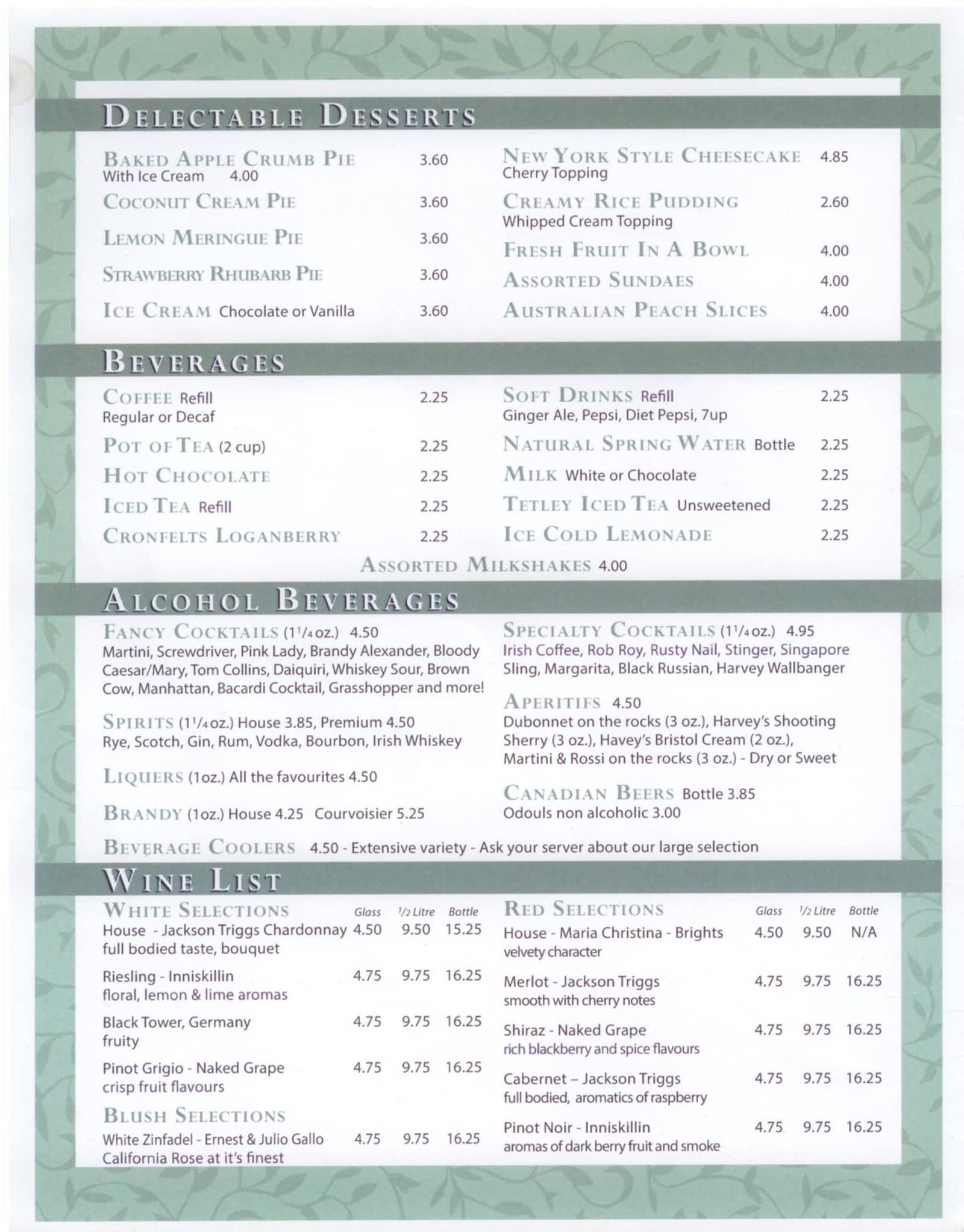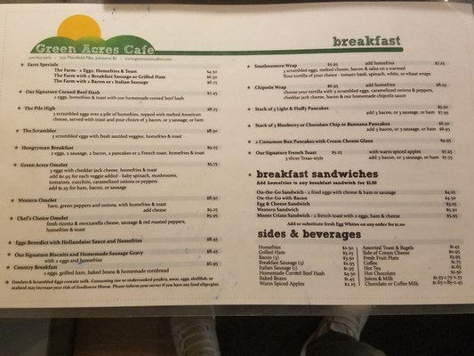 green acres menu