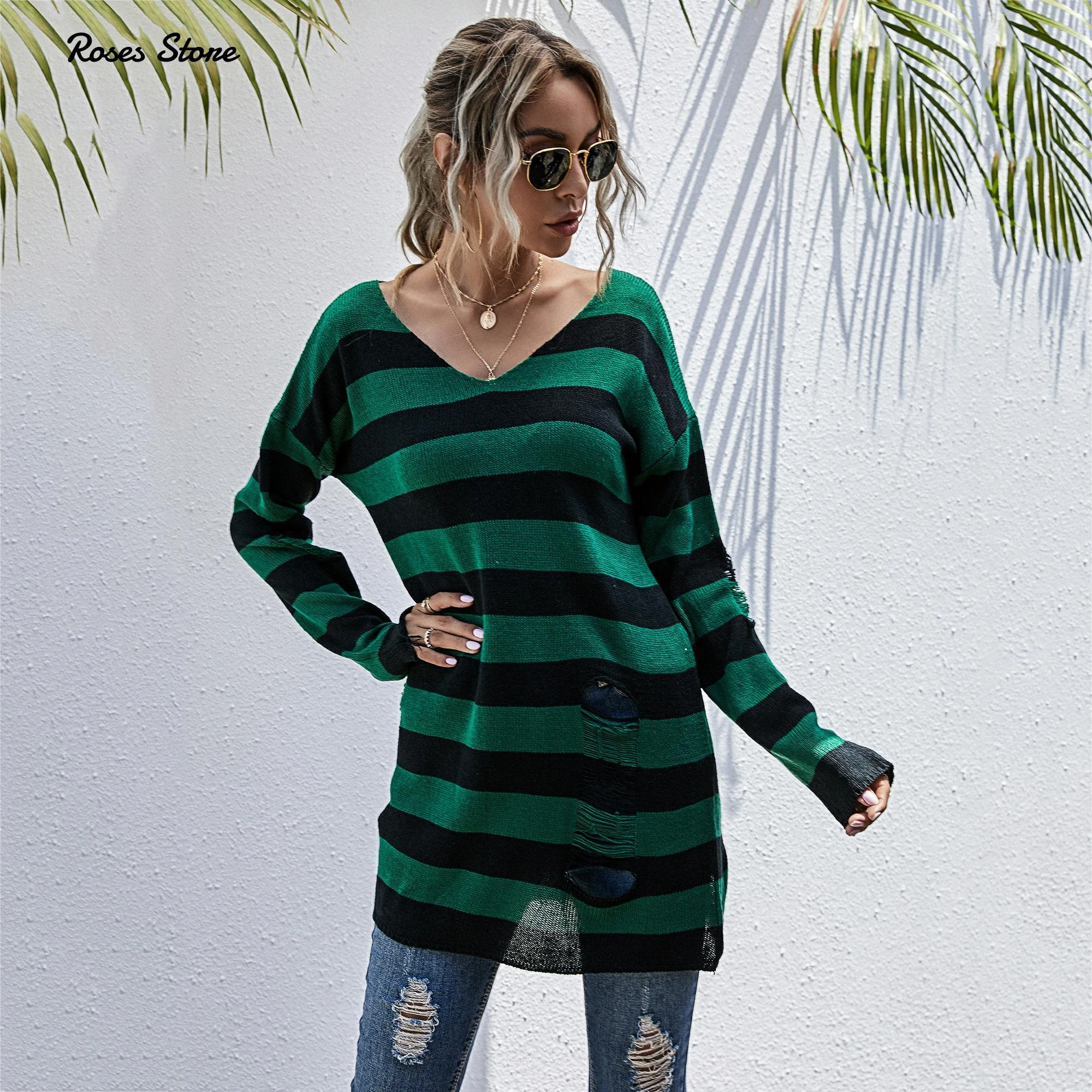 green and black striped sweater