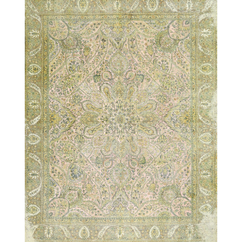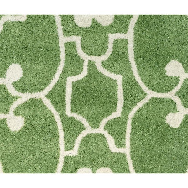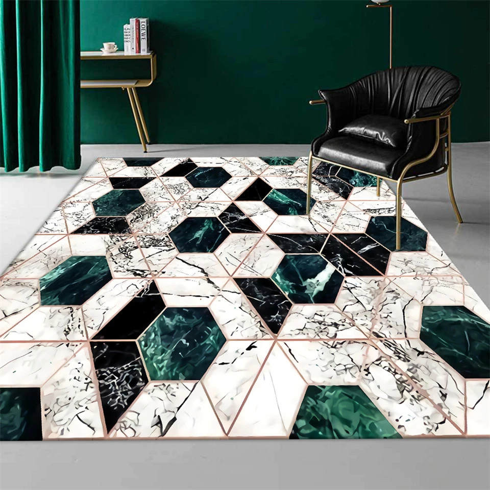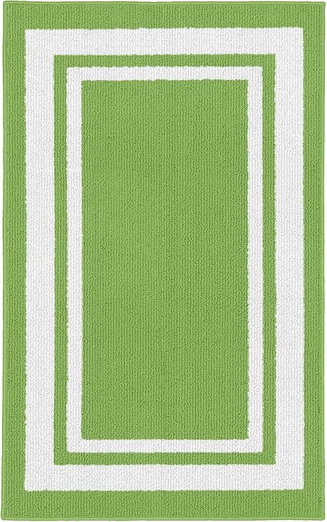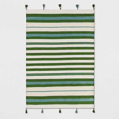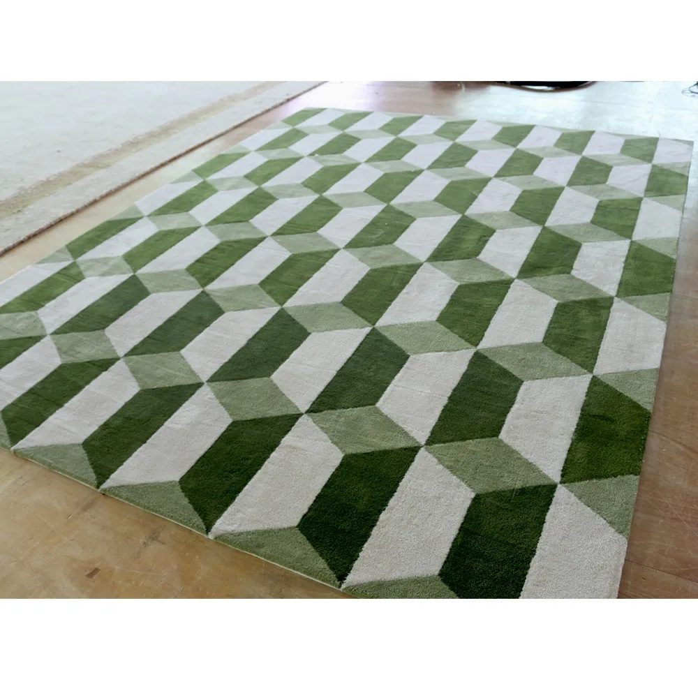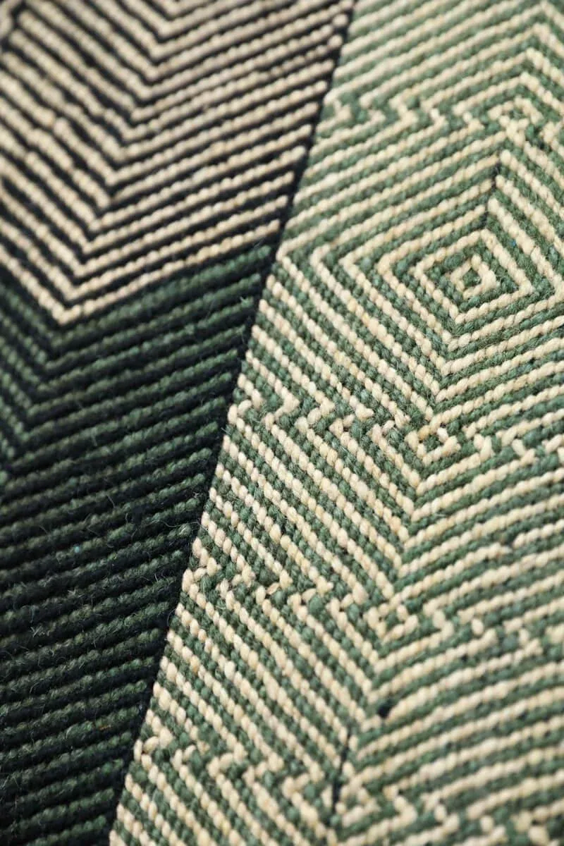 green and white rug