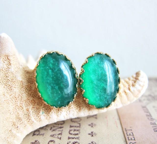 green earrings studs