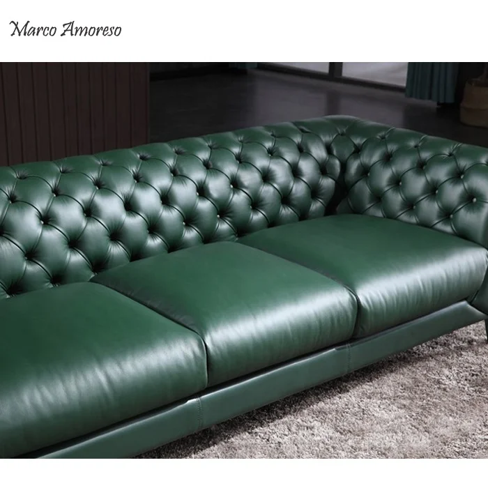 green leather sofa