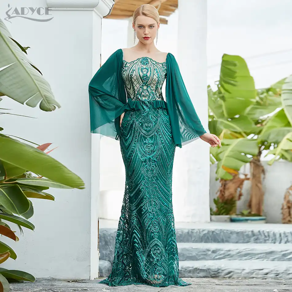 green long sleeve maxi dress
