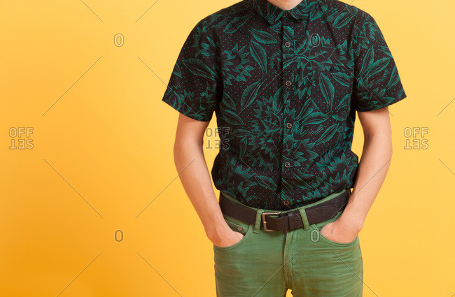 green pant black shirt