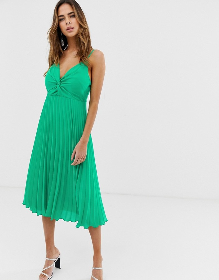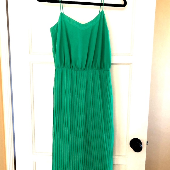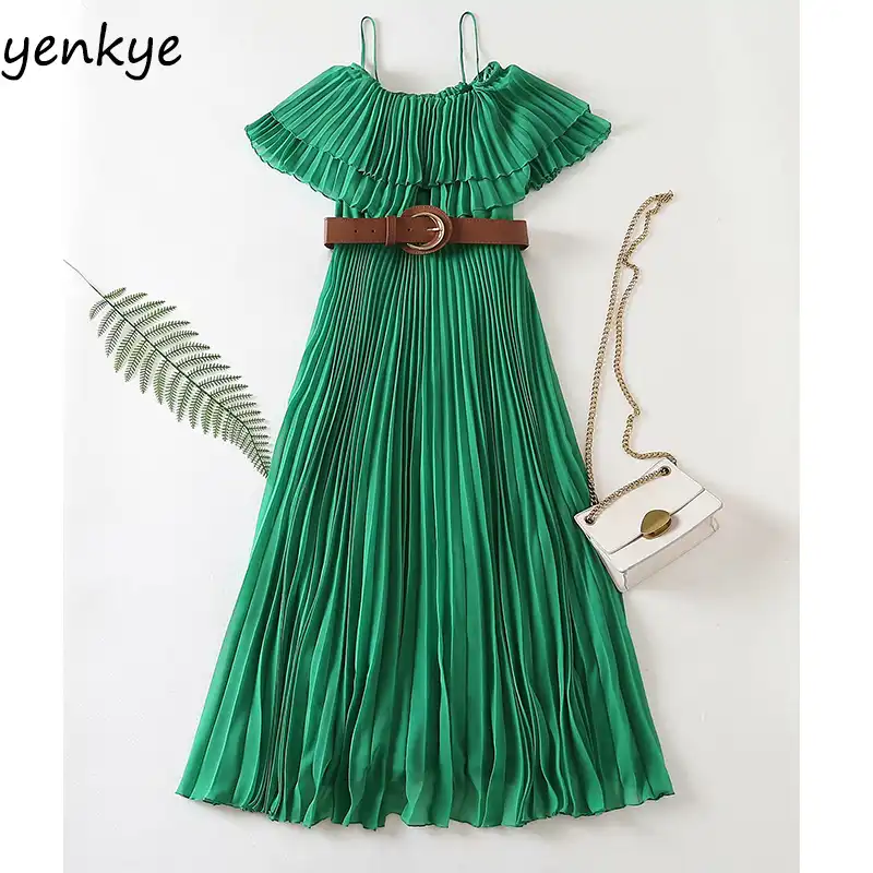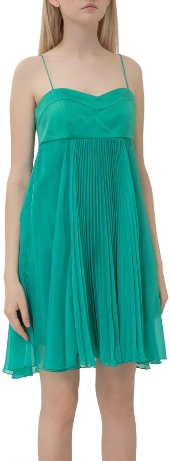 green pleated dress