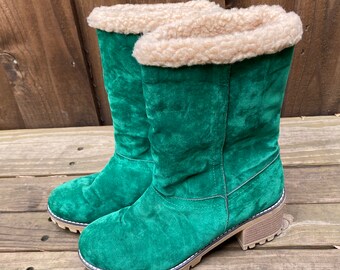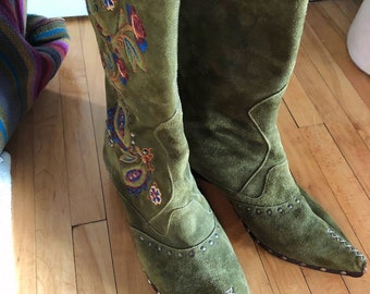 green suede booties